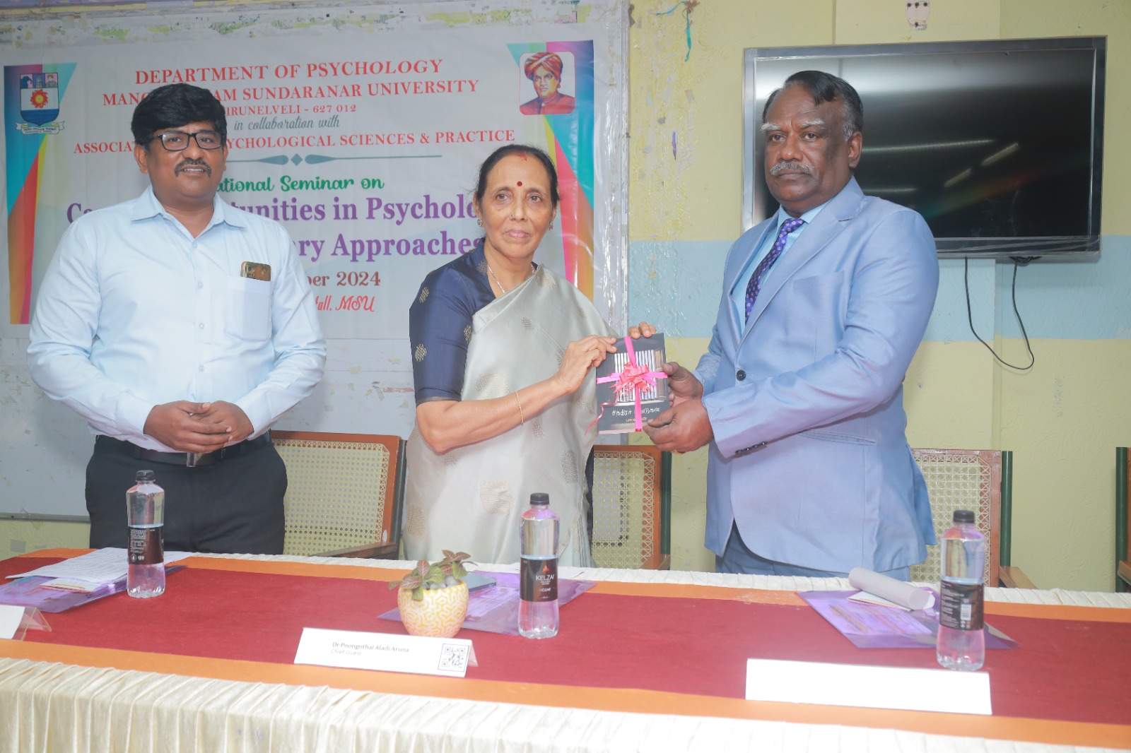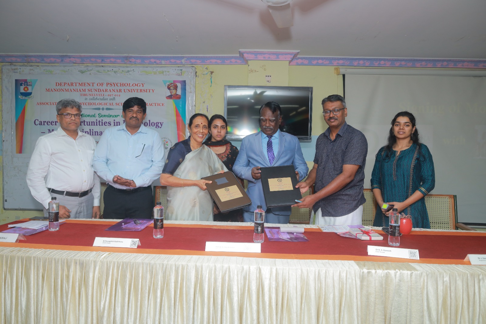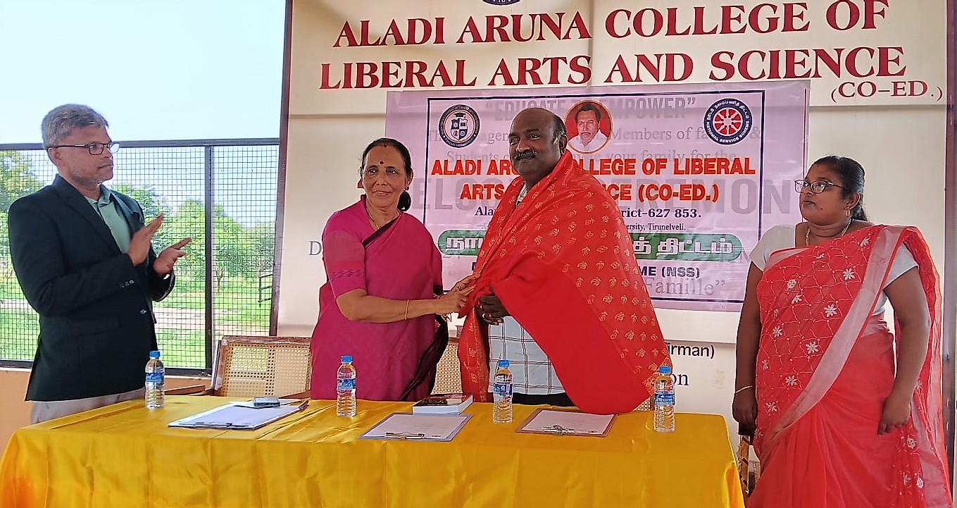 An MoU was signed between Aladi Aruna College of Liberal Arts and Science, Tenkasi and Banyan Academy of Leadership in Mental Health, Chennai on 20.12.2024 on the Manonmaniam Sundaranar University campus. The Vice Chancellor Dr. Chandrasekar; the Secretary of Aladi Aruna College of Liberal Arts and Science Dr. Poongothai Aladi Aruna; Ms. Kavya Balaji, the trustee; Dr. K. S. Ramesh, the Director of Banyan Academy of Leadership in Mental Health, Chennai, Dr. Yuvaraj, the Head of the Department of Psychology, MS University; Dr. P. Abukaniba Meeran, the Principal of Aladi Aruna College of Liberal Arts and Science were present during the important event.