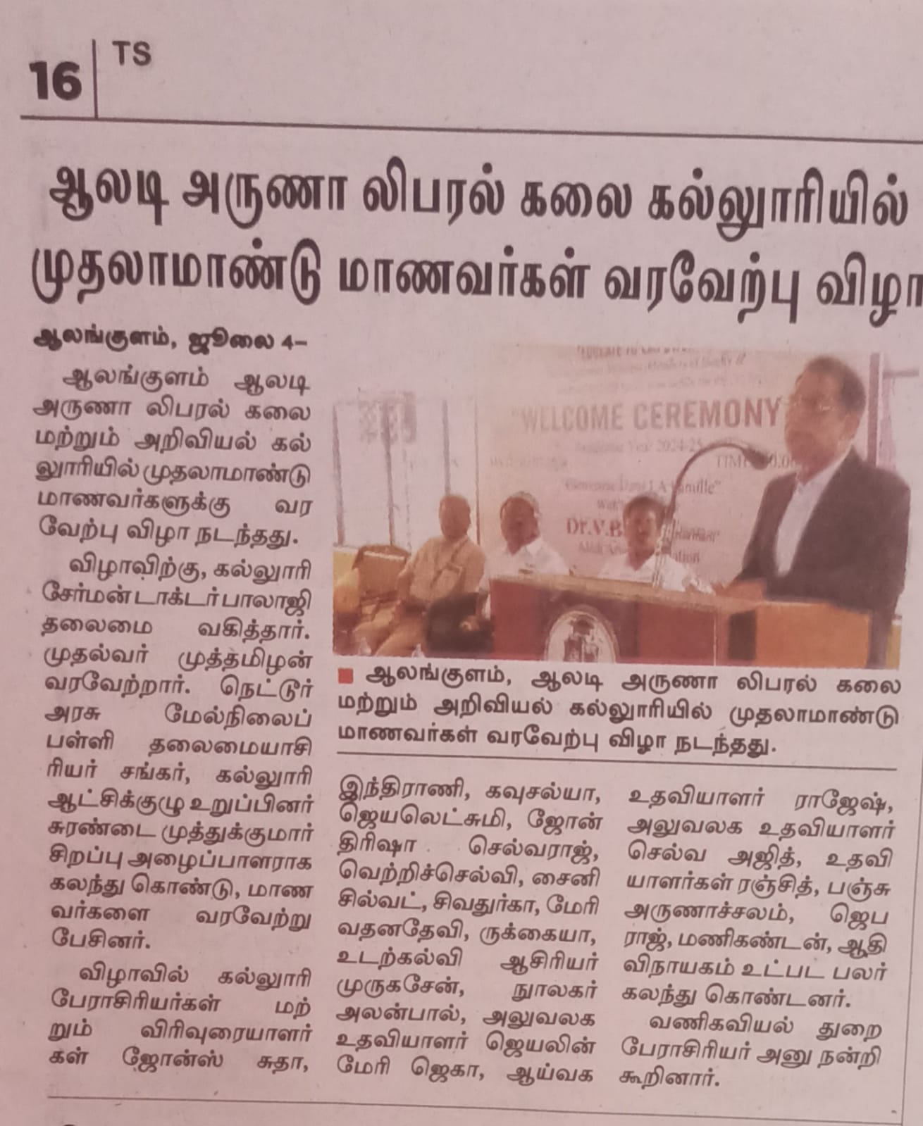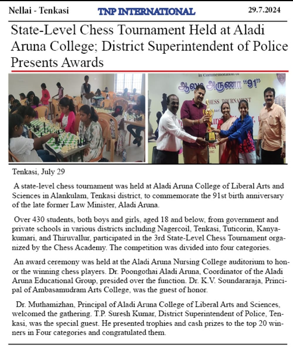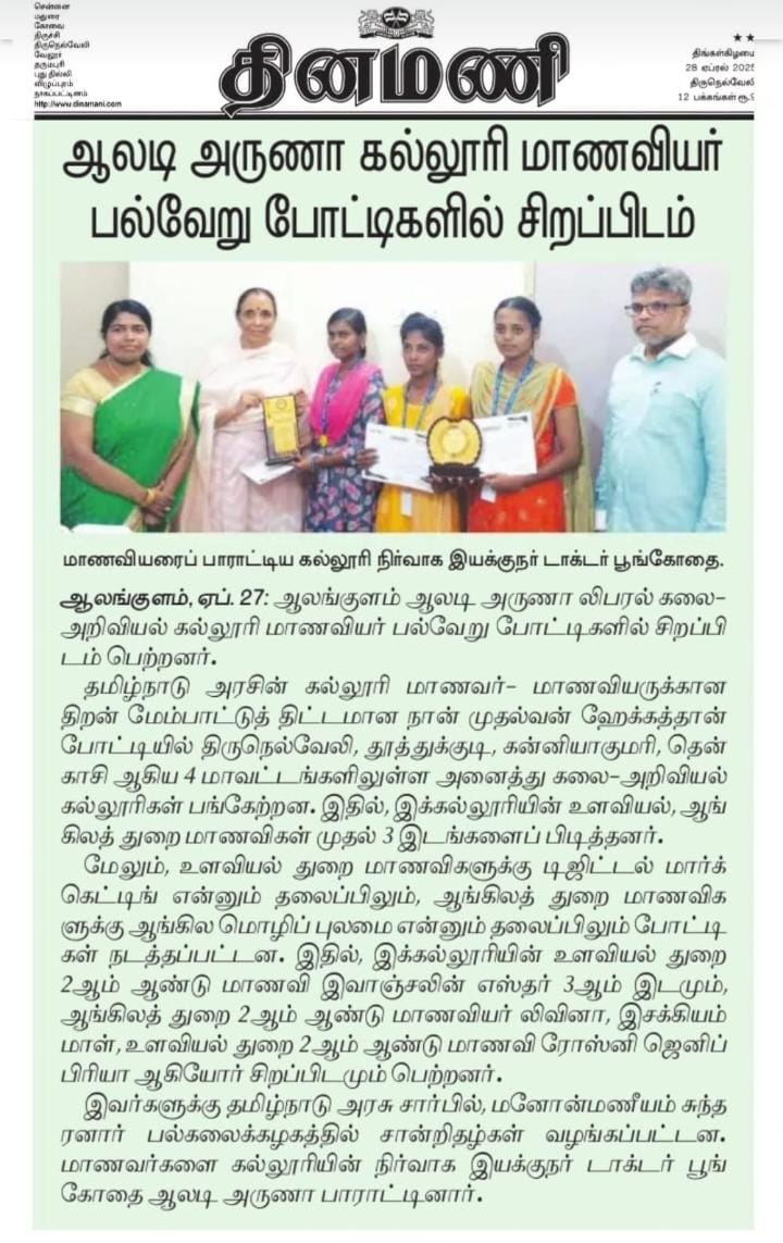 ஆலடி அருணா கல்லூரி மாணவியர் பல்வேறு போட்டிகளில் சிறப்பிடம்